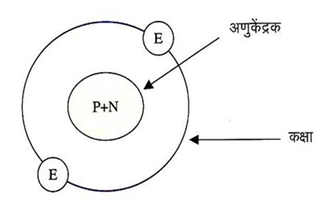ह्या अणुकेंद्रकाभोवती पदार्थास ऋण विद्युत-भारित करणारे विजेचे अनेक कण, विजक (ऋणक, इलेक्ट्रॉन, E) विशिष्ट कोनातून, विशिष्ट कक्षेत, फिरत असतात. प्रत्येक अणुमध्ये धनक व विजकांची